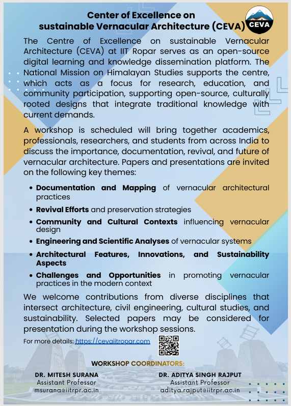 The event will feature poster and oral presentations on Himalayan construction traditions, climate resilience, and community-driven design.