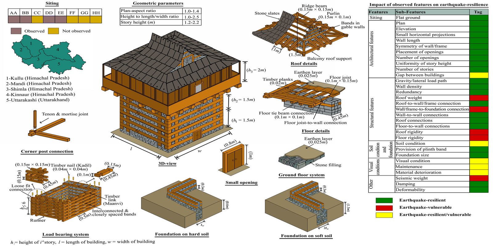 Generations have witnessed these buildings enduring, with some standing for four to five generations or more, according to occupants' recollections during field surveys. Villages such as Sainj, Rohru, and Chopal in Shimla, along with others in Kullu, Kinnaur, and Mandi districts of Himachal Pradesh, and around Rajgarhi in Uttarakhand, host these timeless structures. Despite their resilience, these areas fall within Seismic Zones IV or V as per India's seismic zonation map (BIS 2016).