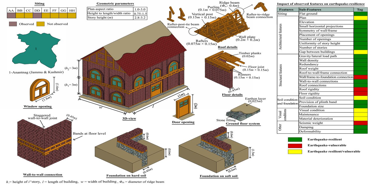 Deodar or Kail timber is integral to Taq construction, employed in crafting timber lacings for floors and roofs. A distinctive aspect of Taq architecture is the presence of horizontal timber lacings resembling ladders, strategically placed within floors. These lacings play a crucial role in consolidating the masonry walls and anchoring them to the floors.