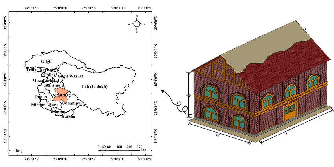Taq construction, a traditional method prevalent in the Western Himalayas, particularly in the Kashmir Valley near Srinagar, Jammu and Kashmir, India, is characterized by its timber-laced masonry technique.